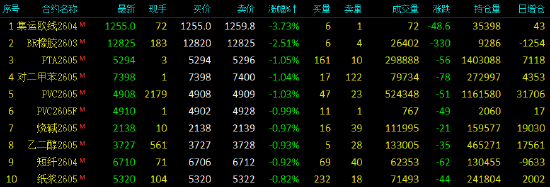 2026年2月26日,早盘开盘,国内期货主力合约涨跌不一。碳酸锂涨超11%,沪锡涨超5%,沪银涨超2%,铝合金、液化石油气(LPG)、燃料油、沪铝涨超1%。跌幅方面,合成橡胶跌超2%,PX、PTA跌超1%,聚氯乙烯(PVC)、乙二醇(EG)、烧碱跌近1%。