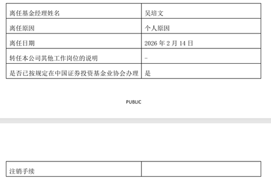 2月14日,在证券基金从业东谈主员的假期第一天,吴培文卸任了在管的四只家具。