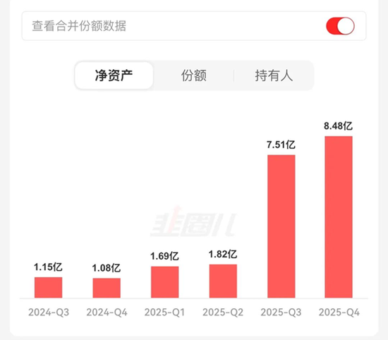 交银荣鑫这个家具之前写过,正本是个平平无奇的无邪建立型家具,主要偏固收,净值波动不大,十年前许多无邪建立型齐是这种。基金司理也换了好几波,余李平从2023年2月起独自解决,之后2024年以来马上上仓位有如神来之笔,靠着对科技行情的把捏,2025年收益达到112%。鸿沟、机构占比也齐明显增长。